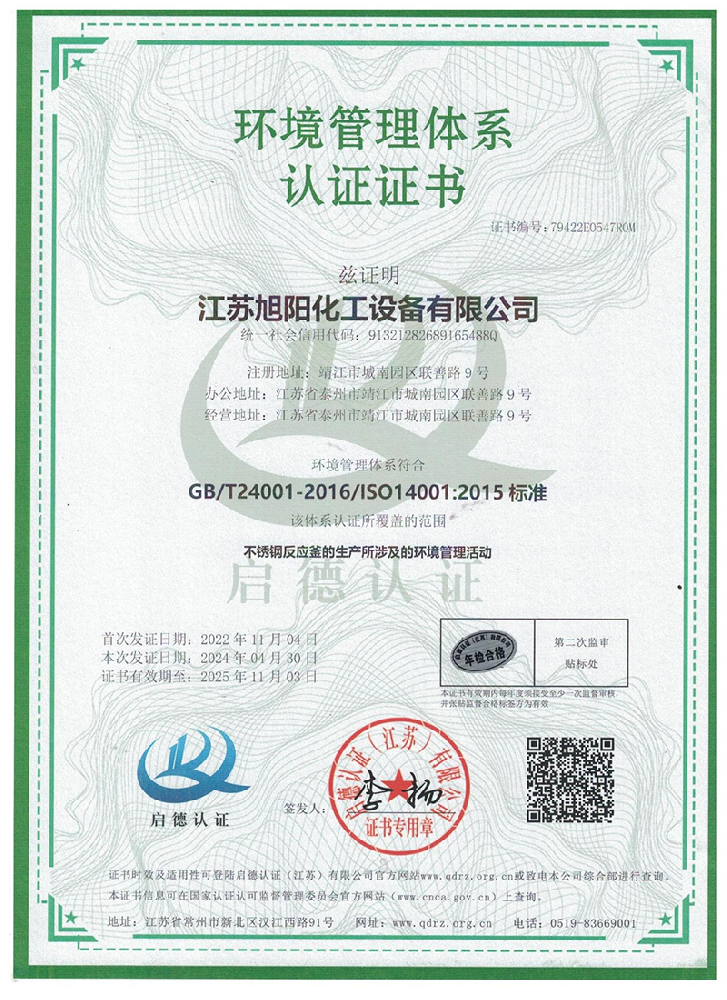 江蘇旭陽(yáng)化工設(shè)備有限公司專(zhuān)業(yè)從事各類(lèi)化工、環(huán)保、制藥、發(fā)酵、食品、新材料、鋰業(yè)等項(xiàng)目設(shè)計(jì)、制造及壓力容器的生產(chǎn)制造,是一家集研發(fā)、生產(chǎn)和進(jìn)出口貿(mào)易于一體的高科技企業(yè)。